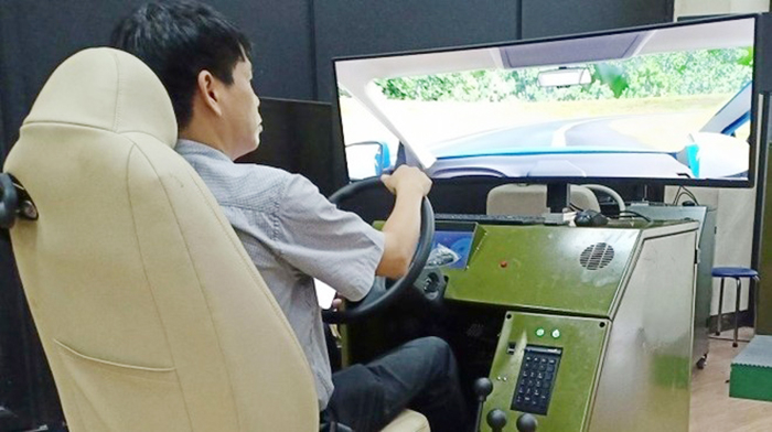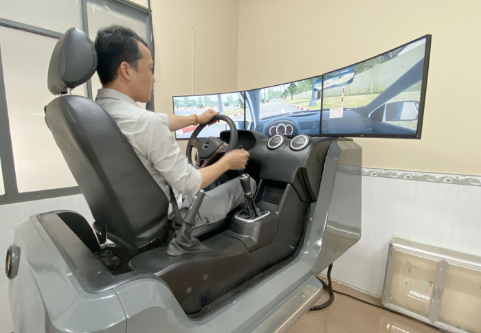 Học viên sẽ ngồi trong buồng lái mô phỏng (cabin 3D), xem các video tình huống thực tế và bấm nút phản ứng khi phát hiện nguy hiểm.